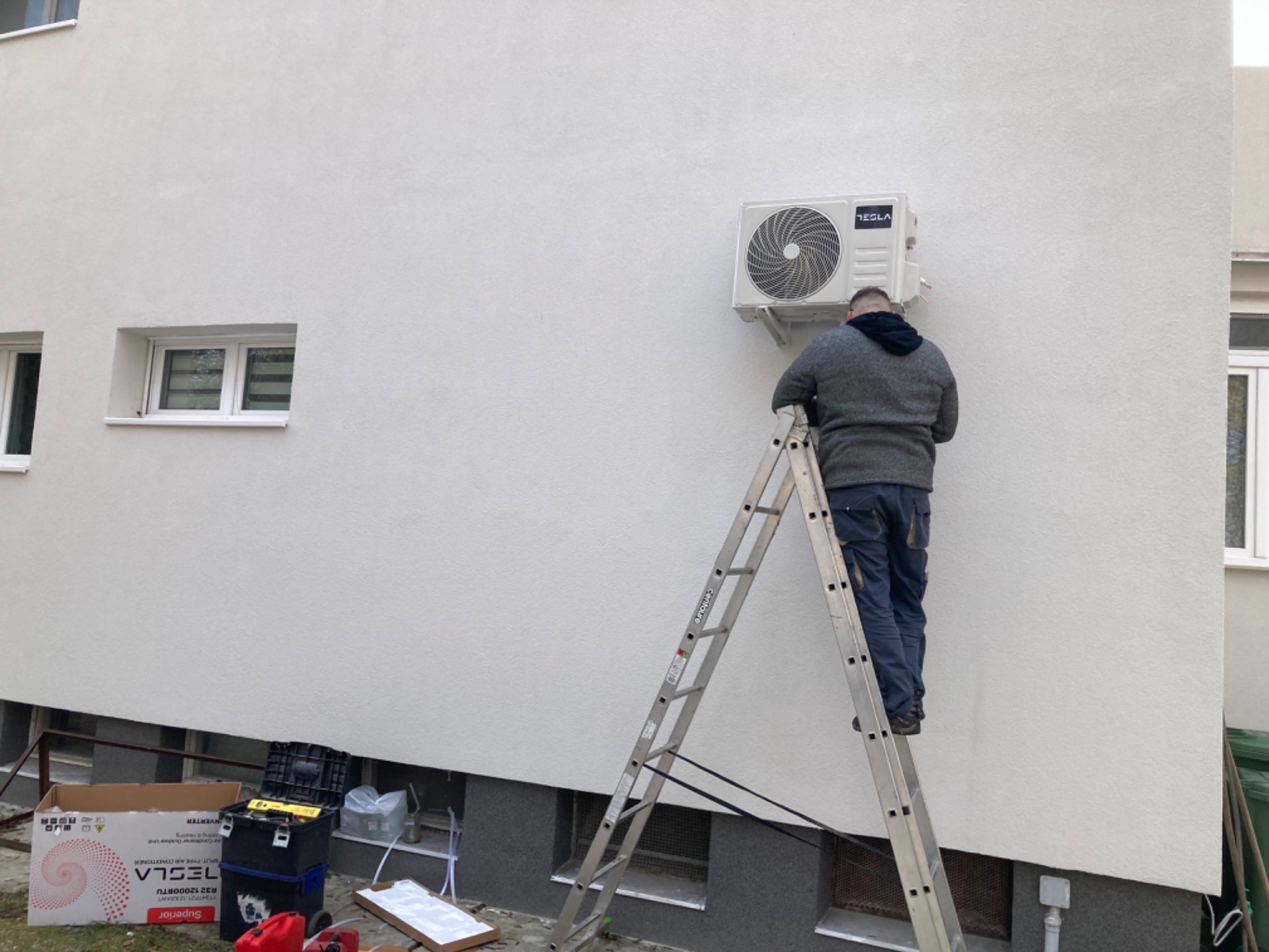 - Beltéri és kültéri egység felszerelése normál tégla falra